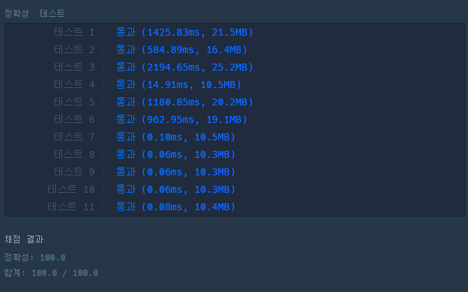 - 예외 입력으로 [0,0,0,0,0,0]의 형태일때, 결과는 "0"이 나와야 프로그래머스 사이트의 테스트 11번을 통과할 수 있다. 따라서 이를 해결하기 위해 answer = str(int(''.join(n))) 의 코드를 구성한다.