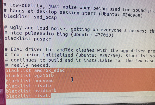 $ sudo gedit /etc/modprobe.d/blacklist.conf